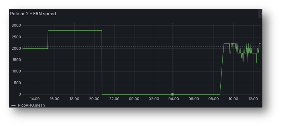 Program działający wewnątrz PicoAHu zawiera 6 predefiniowanych programów które wymuszą obieg powietrza oraz daje możliwość wymuszenia pracy ciągłej.